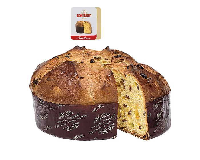 Dalla tradizione artigianale di Bonifanti nasce la ricetta originale del tipico Panettone Milanese, straordinariamente soffice, con un impasto arricchito da uvetta sultanina e scorze candite d’arancia e di cedro. Il Panettone Milanese Basso è un concentrato di sapore e profumo.